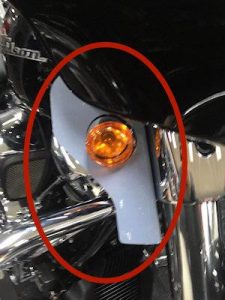 This set of deflectors wrap around the turn signals on the front of the Street Glide rerouting much of turbulence around the rider.